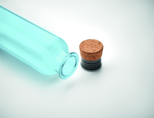 Drinking bottle in Tritan Renew™ with cork lid. Capacity : 500 ml. This product is derived from 50% waste plastic using ISCC certified mass balance.