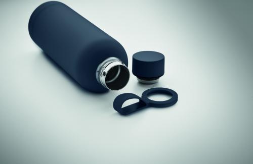 Double wall vacuum insulating bottle in recycled stainless steel (90% recycled stainless steel and 10% stainless steel) with rubber finish and silicone handle. Capacity: 500 ml.