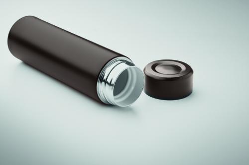Double wall vacuum insulating bottle in recycled stainless steel (90% recycled stainless steel and 10% stainless steel) with ceramic inner lining. Leak-free. Capacity: 420 ml.