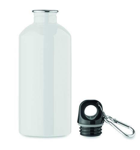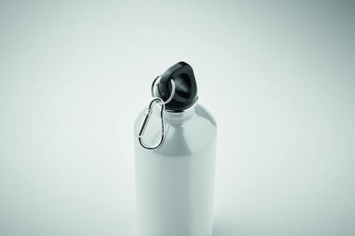 Single layer bottle in recycled stainless steel (90% recycled stainless steel and 10% stainless steel) with carabiner. 500 ml. Sublimation print available on white item only. Leak free. As this is a single walled mug, heat transfer can still occur.