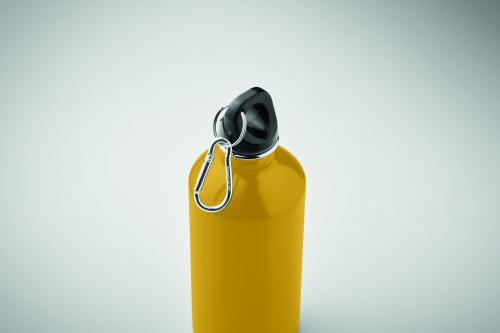 Single layer bottle in recycled stainless steel (90% recycled stainless steel and 10% stainless steel) with carabiner. 500 ml. Sublimation print available on white item only. Leak free. As this is a single walled mug, heat transfer can still occur.