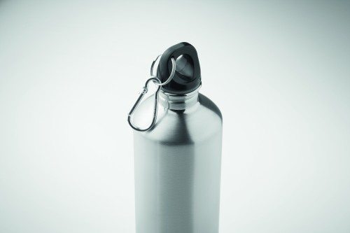 Single wall recycled stainless steel bottle (90% recycled stainless steel and 10% stainless steel) with carabiner. Capacity: 750 ml. The carabiner is not for climbing (non-professional use). Sublimation print available on white item only. Leak free. As this is a single walled bottle, heat transfer can still occur.
