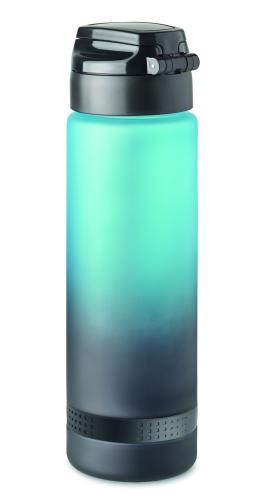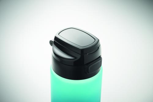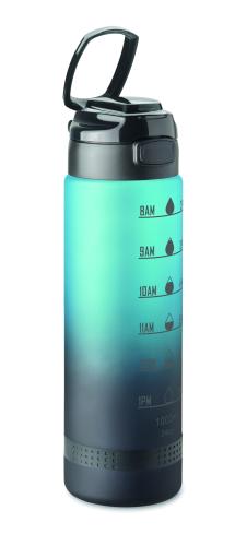 Sports water bottle in RPET, motivational time markings, one hand opening flip top lid, safety lock and carrying strap. Capacity: 1L.