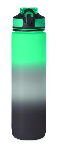 Sports water bottle in RPET with integrated straw, soft silicone mouth piece, motivational time markings, one hand opening flip top lid, safety lock and carrying strap. Capacity 1L.