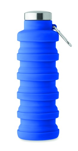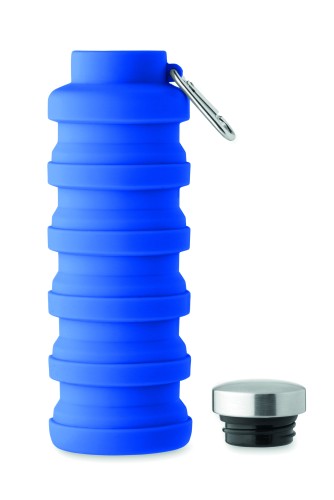 Collapsible silicone bottle with stainless steel lid and aluminium carabiner. The carabiner is not for climbing (non-professional use). Capacity: 500 ml.