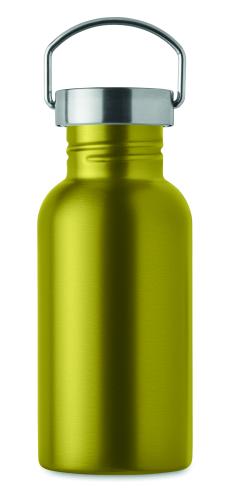 Single wall bottle in recycled stainless steel (90 % recycled stainless steel and 10% stainless steel) with lid and handle. Leak-free. Capacity: 500 ml. As this is a single walled bottle, heat transfer can still occur.