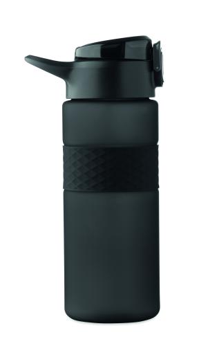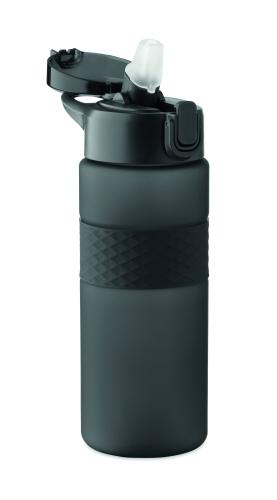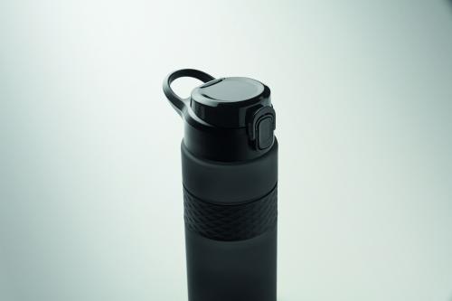 Drinking bottle made from RPET with silicone grip, PP flip-top lid and safety lock. Including integrated straw. Leak-free. Capacity: 700 ml.