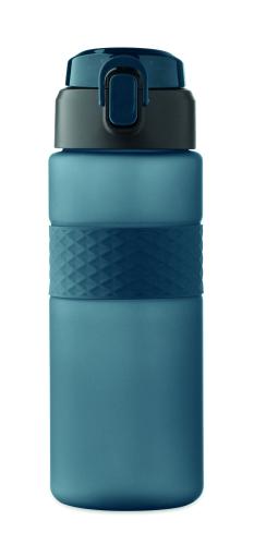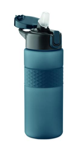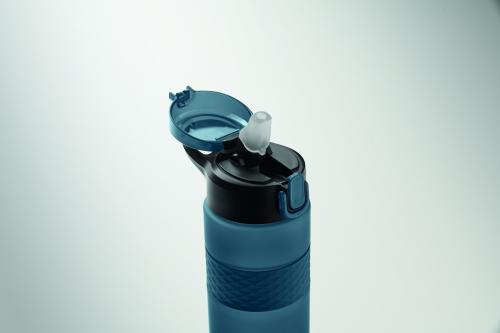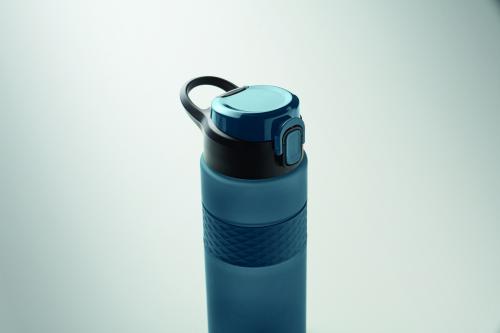 Drinking bottle made from RPET with silicone grip, PP flip-top lid and safety lock. Including integrated straw. Leak-free. Capacity: 700 ml.