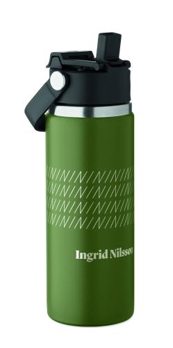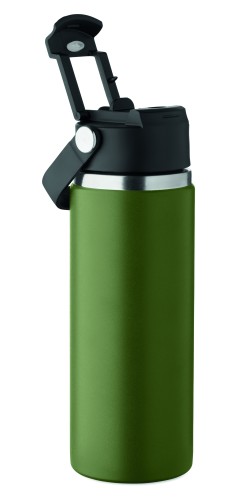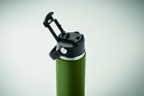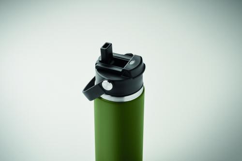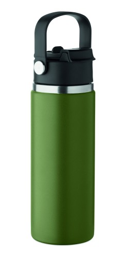 Double wall insulated bottle in recycled stainless steel (90% recycled stainless and 10% stainless steel) with combination straw and sip lid with handle. Leak free. Capacity : 500 ml.