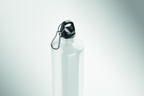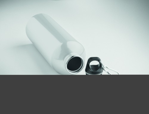 Single wall bottle (90% recycled stainless steel and 10% stainless steel) with a PP lid and carabiner. Capacity 1000 ml. As this is a single wall bottle, heat transfer can still occur.