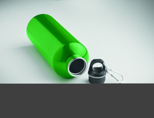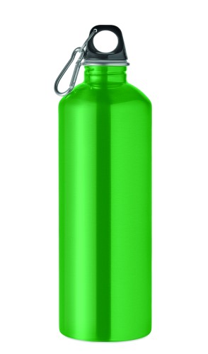 Single wall bottle (90% recycled stainless steel and 10% stainless steel) with a PP lid and carabiner. Capacity 1000 ml. As this is a single wall bottle, heat transfer can still occur.