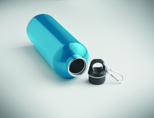 Single wall bottle (90% recycled stainless steel and 10% stainless steel) with a PP lid and carabiner. Capacity 1000 ml. As this is a single wall bottle, heat transfer can still occur.