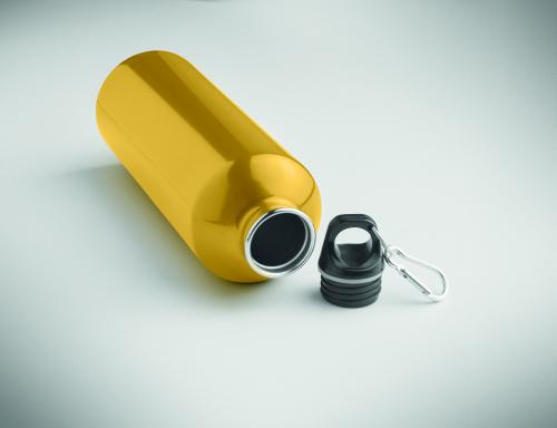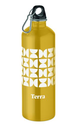 Single wall bottle (90% recycled stainless steel and 10% stainless steel) with a PP lid and carabiner. Capacity 1000 ml. As this is a single wall bottle, heat transfer can still occur.
