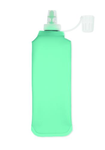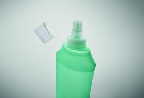 Foldable TPU water bottle with bite valve. Lightweight and portable design, ideal for outdoor use. Leak-free. Capacity 500 ml.