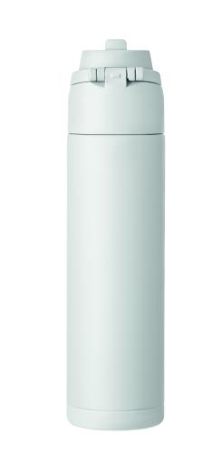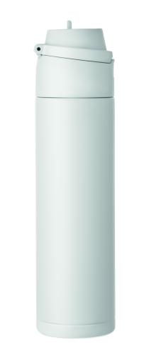 Double wall insulated recycled stainless steel (90% recycled stainless and 10% stainless steel) bottle. Features 2-in-1 straw and sip PP lid with handle. Leak-free. Capacity: 500 ml.