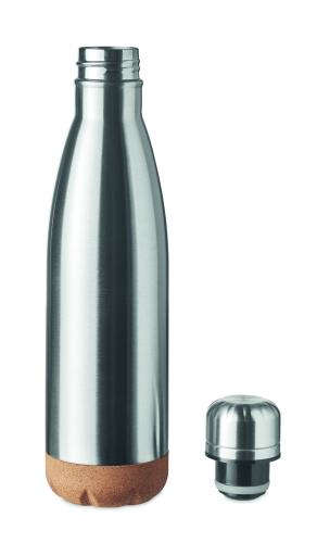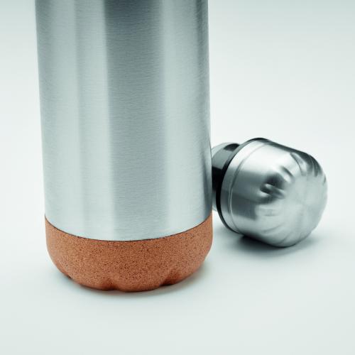 Double wall stainless steel vacuum bottle with cork base detail. Capacity: 500 ml. Leak free. Cork is 100% natural material. Due to its structural nature and surface porosity the final print result per item may have deviations.