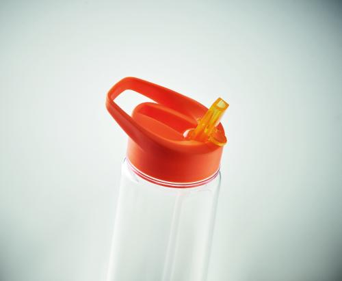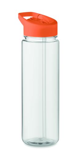 Drinking bottle in RPET and PP flip-top lid with straw. Capacity: 650ml. Not suitable for carbonated drinks.