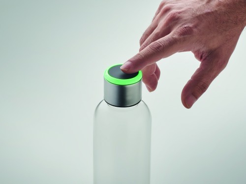 Tritan™ steel bottle with hydration reminder. Sensor light glows every hour reminding you when it is time to drink. Including 1 CR2032 battery. Capacity: 500 ml.