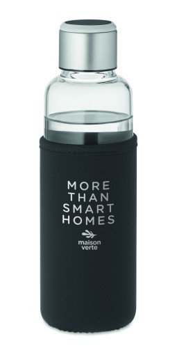 Borosilicate glass steel bottle with hydration reminder in pouch. Sensor light glows every hour reminding you when it is time to drink. Including 1 CR2032 battery. Capacity: 500 ml.