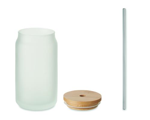 Mason cocktail jar with special coating for sublimation with bamboo lid. Including a Stainless Steel straw. Capacity:400 ml. Bamboo is a natural product, there may be slight variations in colour and size per item, which can affect the final decoration outcome.
