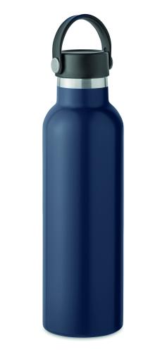 Double wall recycled stainless steel (90% recycled stainless and 10% stainless steel) insulated vacuum bottle with non-leak screw cap and additional interchangeable built-in straw cap. Capacity: 700 ml.