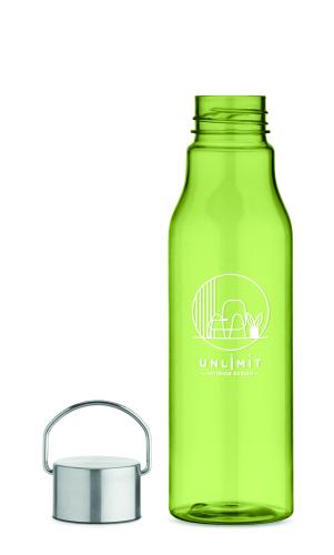 Drinking bottle in RPET which is BPA free and stainless steel cap with lid handle. Leak free. Capacity: 600 ml.