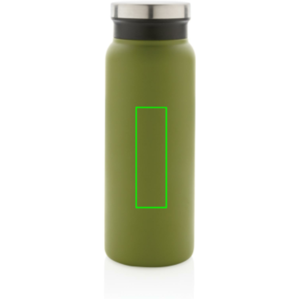 This RCS Recycled stainless steel vacuum bottle comes with a secure screw-on lid that features a wide opening for easy cleaning and filling. The additional PP insert ensures that the bottle is leakproof. This bottle is made from recycled stainless steel and features a double-wall construction to keep your favourite beverages warm for up to 5 hours or cold for up to 15 hours. Made with RCS (Recycled Claim Standard) certified recycled materials. RCS certification ensures a completely certified supply chain of the recycled materials. Total recycled content: 77% based on total item weight. BPA free. Capacity 600ml. Including FSC®-certified kraft gift box.