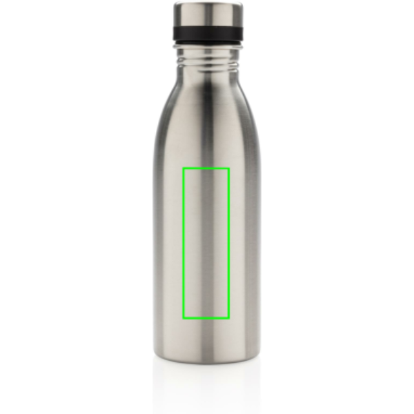 This perfect size and lightweight reusable bottle is made from 18/8 durable recycled stainless steel. Leakproof and perfect for everyday carrying and hydration. Recommended for cold water only. Made with RCS (Recycled Claim Standard) certified recycled materials. RCS certification ensures a completely certified supply chain of the recycled materials. Total recycled content: 80% based on total item weight. BPA free. Capacity 500ml. Including FSC®-certified kraft packaging.
