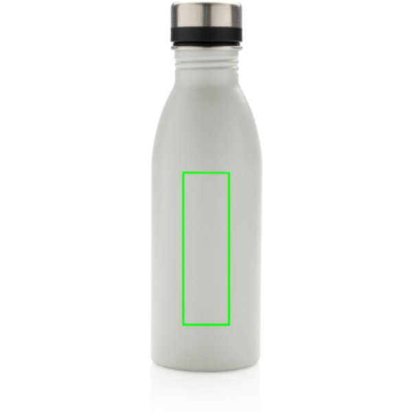 This perfect size and lightweight reusable bottle is made from 18/8 durable recycled stainless steel. Leakproof and perfect for everyday carrying and hydration. Recommended for cold water only. Made with RCS (Recycled Claim Standard) certified recycled materials. RCS certification ensures a completely certified supply chain of the recycled materials. Total recycled content: 80% based on total item weight. BPA free. Capacity 500ml. Including FSC®-certified kraft packaging.