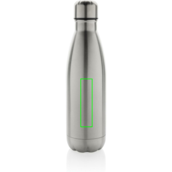Elevate your daily water intake with this single wall stainless steel bottle. The bottle is suitable for cold drinks only. With a base that fits in most cup holders, this sleek looking water bottle will keep you hydrated on the go wherever you are. Made with RCS (Recycled Claim Standard) certified recycled materials. RCS certification ensures a completely certified supply chain of the recycled materials. Total recycled content: 84% based on total item weight. BPA free. Capacity 500ml. Including FSC®-certified kraft packaging.