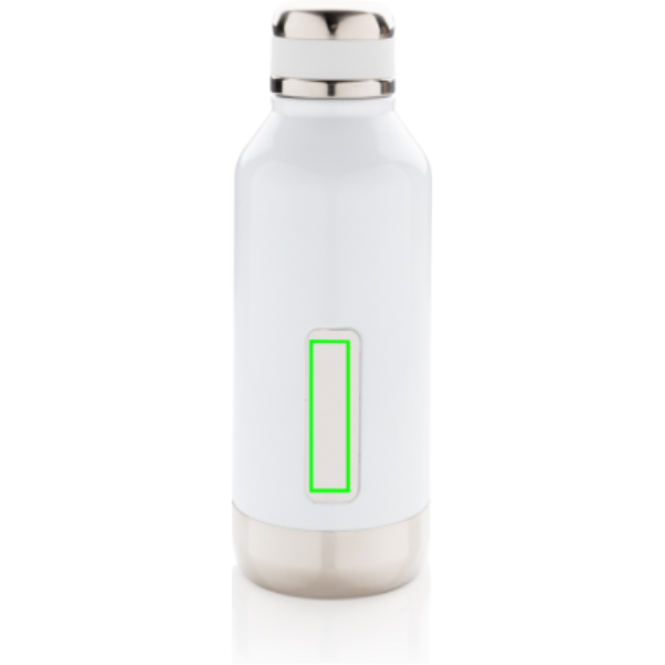 Leakproof vacuum insulated bottle with twist off lid. With unique logo position on the front. 304 stainless steel inner and 201 stainless steel outer keeps your drinks hot 5h and cold 15h. Content: 500ml.