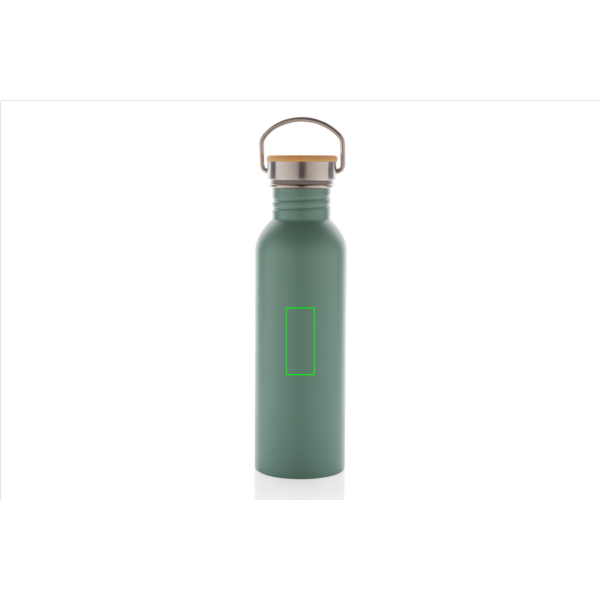 A drinking bottle that is beautiful through its simplicity. This modern single wall stainless steel bottle features a stainless steel lid finished with a beautiful piece of bamboo. With a stainless steel handle for easy carrying. Capacity 710ml. BPA free. Handwash only.