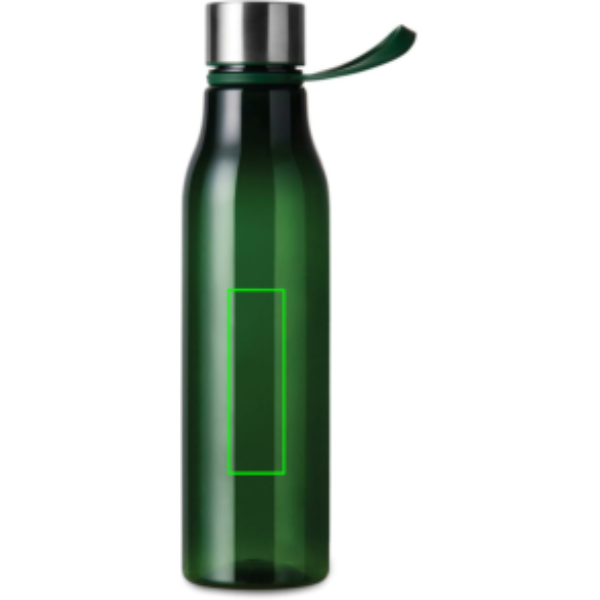 Water bottle made from BPA-free RCS certified recycled PET. With a generous 800 ML capacity, this bottle is ideal for workouts, travel, or whenever you need extra hydration. The loop doubles as a convenient handle, perfect for carrying on the go or hanging on exercise equipment. The ideal shape allows it to fit in most cup holders. Exclusively suitable for cold drinks. Handwash only. Certified by RCS (Recycled Claim Standard), this certification ensures that the entire supply chain for recycled materials is verified. The product contains 68% RCS certified recycled PET.